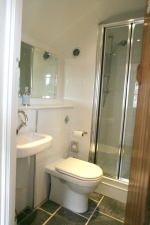 A useful room, this shower room houses the ground floor toilet and washbasin, and also an electric shower